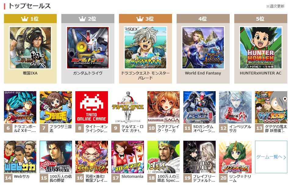 ここでよく、ヤフゲのランキングという話題が出るので調べてみたんですが、これのことでしょうか? 確かにモンパレは3位で、パッと見た感じ、これを継続させないと継続するゲームがないんじゃない?とも思ってしまいますね。