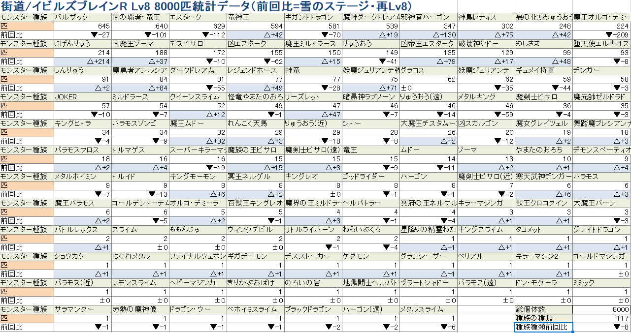 街道/イビルズブレインR Lv8 8000匹統計データ