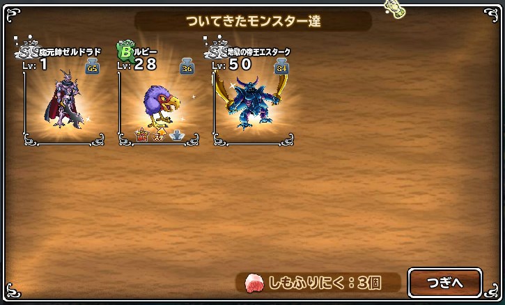 デスカイザーゲット出来ずどうしてもゼルドラドと青エスタほしくてなけなしの肉20個を手始めに1個投げを2回。ログにSSのらず・・・。次に3個投げ3回。3回目で来たーー!! (^-^ 残りの肉9個はレティス狙ってみようかな (^^)