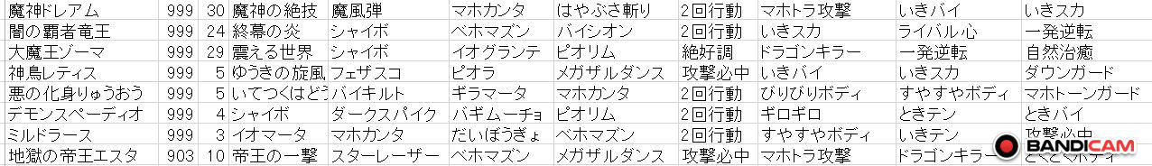 雑談版で異界レベル7をクリアしたと書いた者です。異界レベル8に挑戦。ボス到達しましたがすぐ全滅しました。基本もあまりわかっていないのでどんなことでも結構ですのでアドバイスお願いします。エクセル画像を張ったらいいみたいなご意見もあったのでやってみました。SSは表の8匹以外いません。ちょうおうぎも1個しかありません。