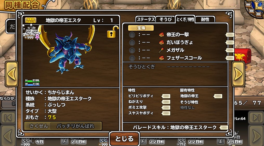 結局良特性つかず…黄エスタとの同種配合も真ルカニ・真デインガードと散々… (..; 壁兼ねがえりデバフ要員かなー…