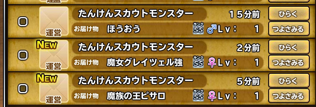メタルと強敵で貯めた22個でようやくピサロがきてくれました。。。長かった~うれしい~。Sグレイチェルも2体持っているので、配合が楽しみです。ほうおうの使い道は?