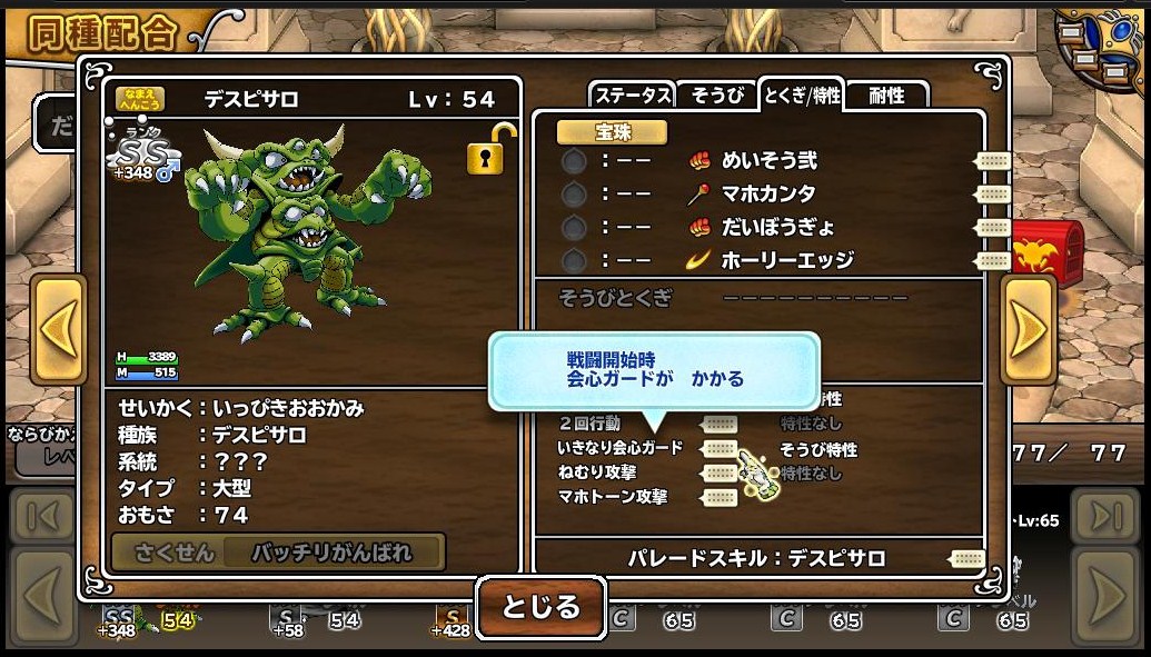 奇遇ですね、うちのデスピサロはこうですよ。いきなりパレスキ封じですよ。まぁものめずらしさに負けて付けたのは自分ですけど・・・