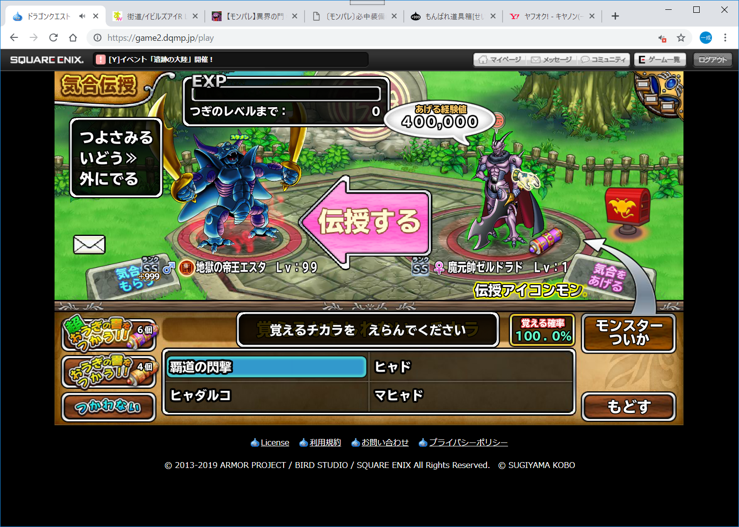前回の探検SPで採った覇道を使わないともったいないか、ソーサリーも機神も無いのに超おうぎを使う方がもったいないか。。。この気合伝授前の画面のまま悩んでる。サ終間近なのにエリクサー病かもしれない。