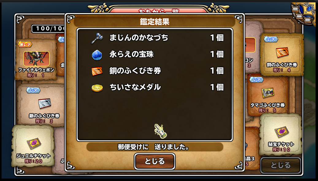 最終日の終了2時間半前にに!。。魔人のトンカチ 一発でした。デモンスピアが100個目だったので、その謝礼かな?