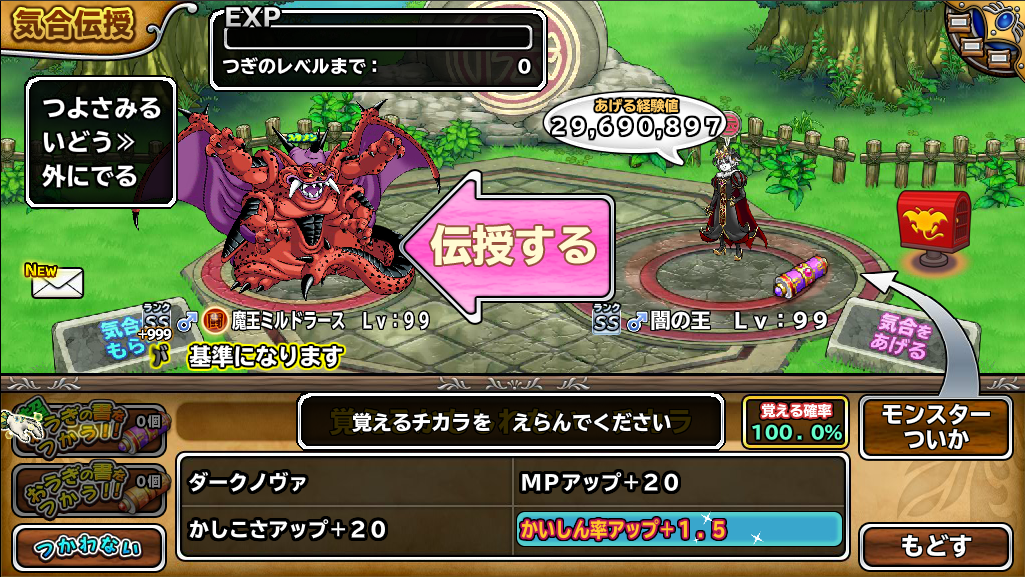なけなしの超扇使って闇の王かいしん素材にします ちなみに伝授枠しょぼかったです