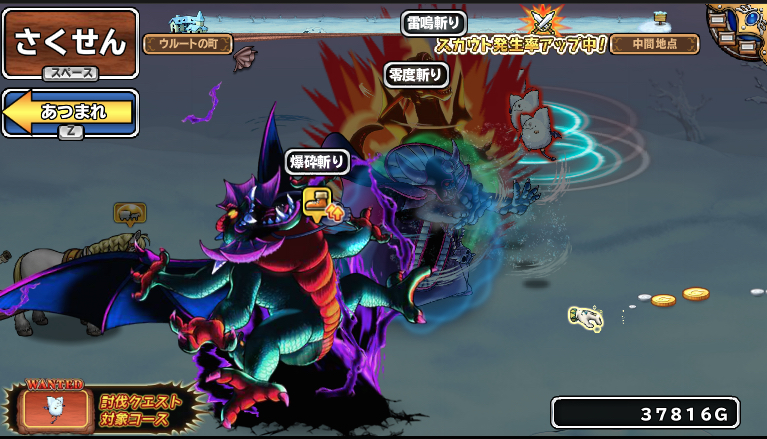 大好きなモンスターたちと最後のパレード、まずはこの三魔王。不遇なとくぎだっだけど、爆砕、雷鳴、零度の各斬撃が好きでつけていたよ。グラフィックは同じものがペースだけど、色違いなだけじゃないし、音もちゃんと違うんだよなあ。グラフィックも音も最高! (^_-