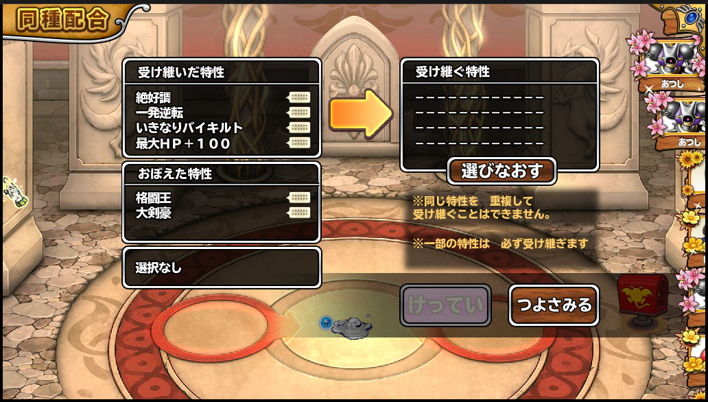 うちは最初の頃に、初めて肉投げでスカウトしたはぐメタにSSミニゴロンを。もはやどうしようもないけど記憶には残ります。ボディプレスで活躍させてあげられなかったのは少し心残り。