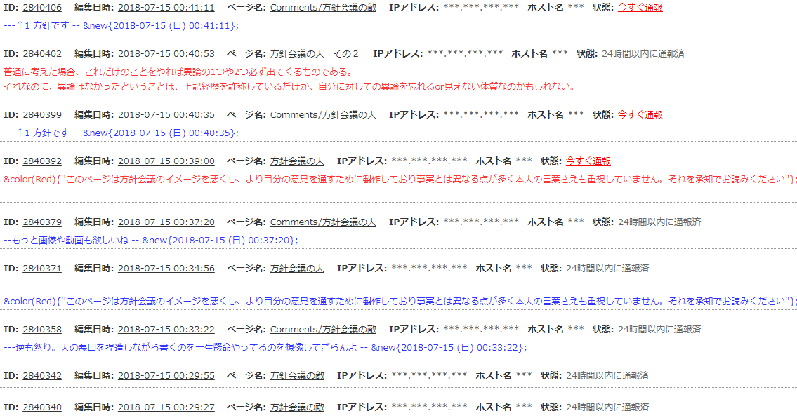 1回の通報でこうなった。ほぼ1人による行為。仮BLになるたびにIPを変えてます。