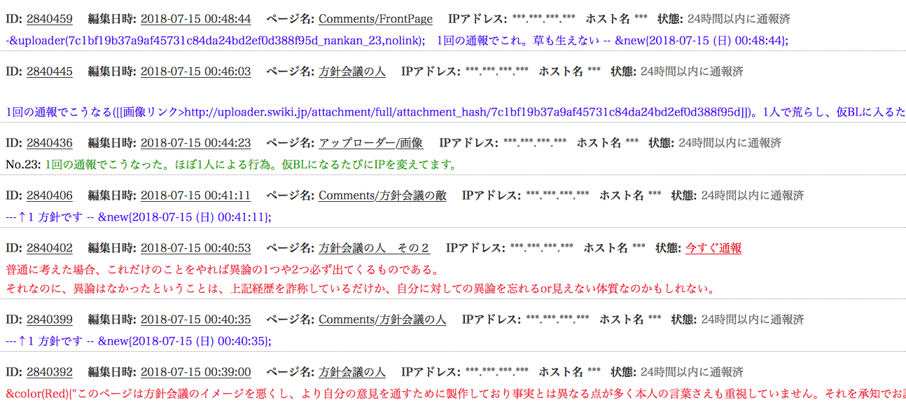全部を仮BL?それ分かるのは、管理者か通報者、もしくは複IPを使ってる本人だけだよね。上のコメント見ると管理者と通報者じゃないね。つまり4コメは複IPを利用し、頻繁に仮BLに入ってる荒らしってわけだ