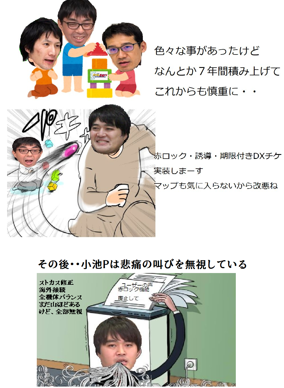 文字読むのがめんどくさいだろ?これ見れば小池の無能ぷりがわかるだろう。丸山が不安定な土台を作り、ナンカンは見てるだけで、佐藤はジオやハイチンなど尖った調整して、小池が全部壊す。