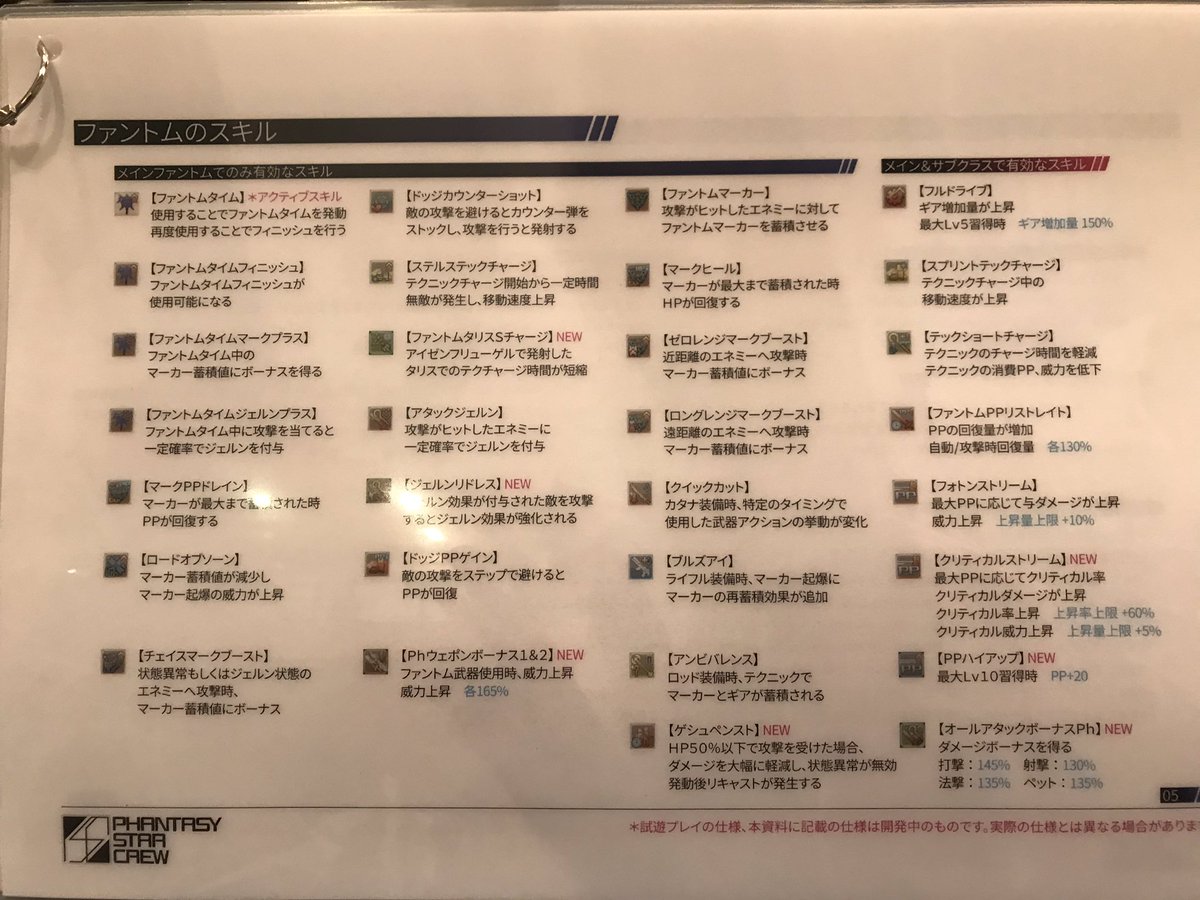 感謝祭の試遊会場にあったPhのスキル説明