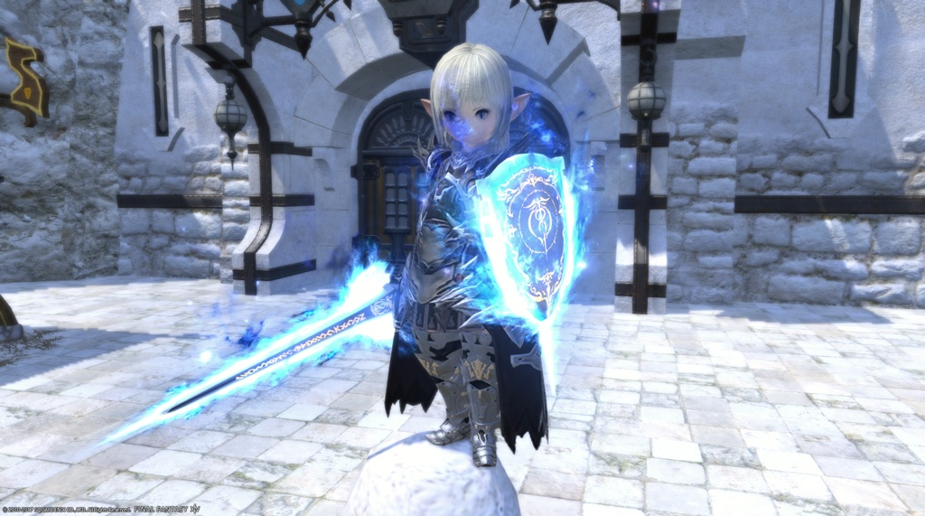 この武器見た目めっちゃカッコいい、剣と盾でナイトっぽく見えるしFF14にあったナイトのアニマウェポンの片手剣エーティルと盾のプリュウェンにそっくり青い光が出てるとこも 武器フォーム変更してメインで使ってる一番お気に入りの武器