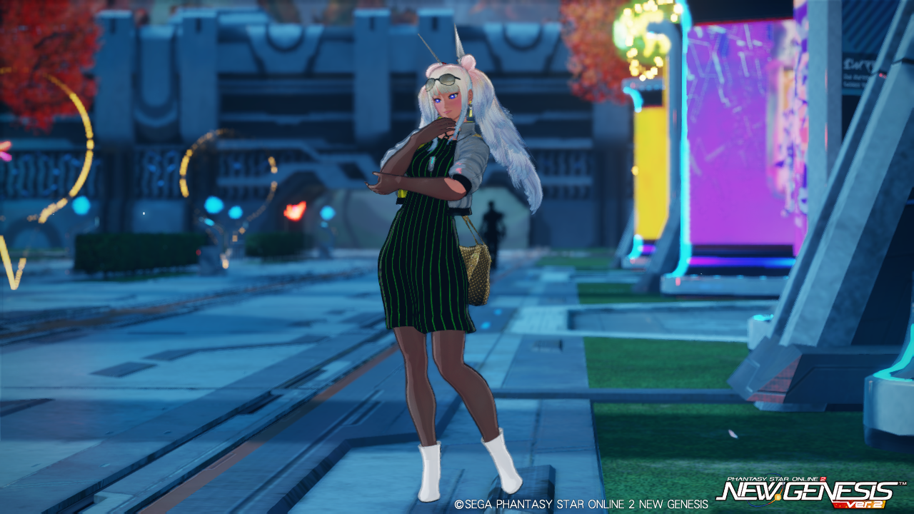 ショッピングに来た風コーデしてみた、てかよく見たら後方面にコ〇ンの犯人みたいなのが居て設定低くしてるの忘れてた(まさかNPCを心霊写真みたいに撮ってしまう限界カメラマン)