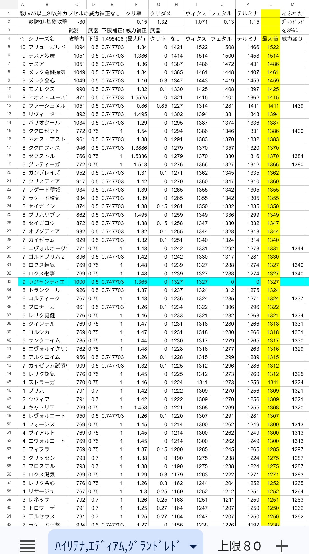 すみません、フリューガルドの潜在倍率を入力ミスしていました。表の数値の1.0224倍です。