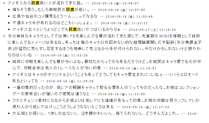 流石に民度が高いユーザーは彦根大坂に粘着して圧力かけるし、気に食わない性能だと難癖付けて圧力かけるの流石っすね^^;いやぁあ、低レアでも雑魚でも我慢して使い方模索する城民の民度低すぎぃい 今でもヒゴネは許してないし、今回もうんざりしてるぞ