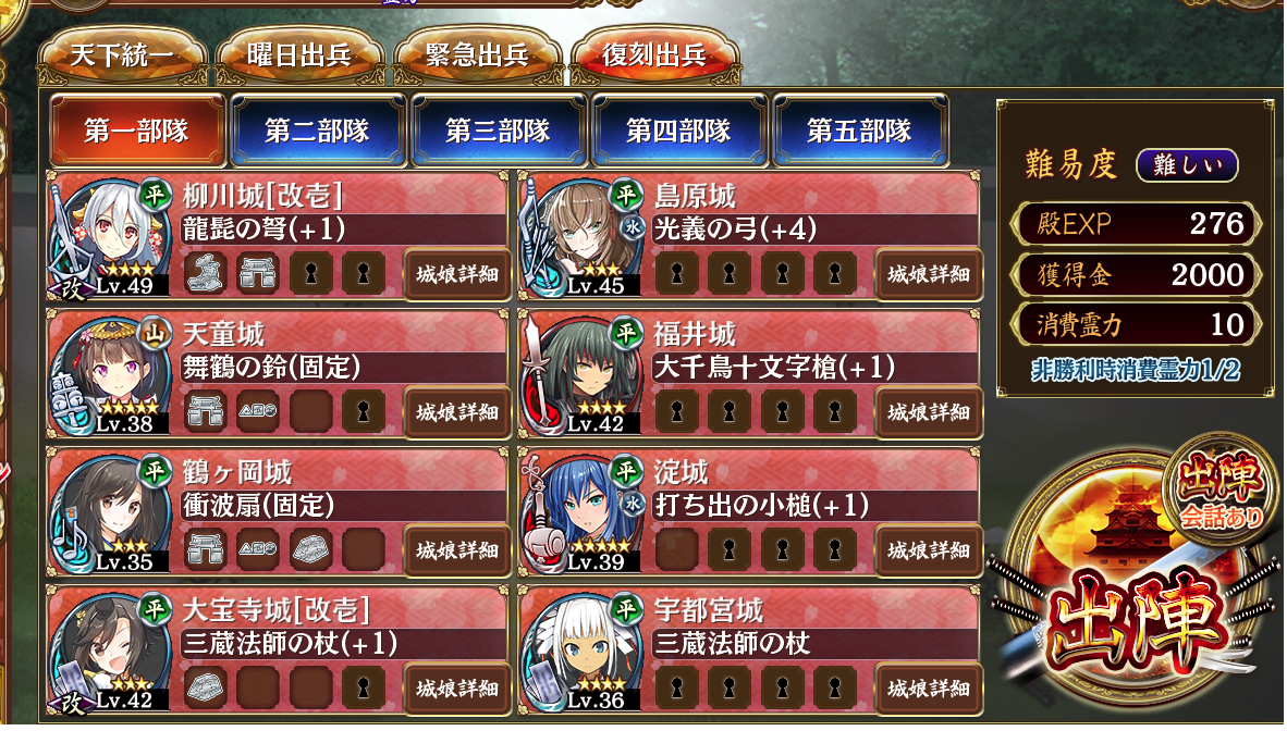 初めて一か月くらい、こんな編成で難をクリアできた・・・B蔵破壊・島原城大破
