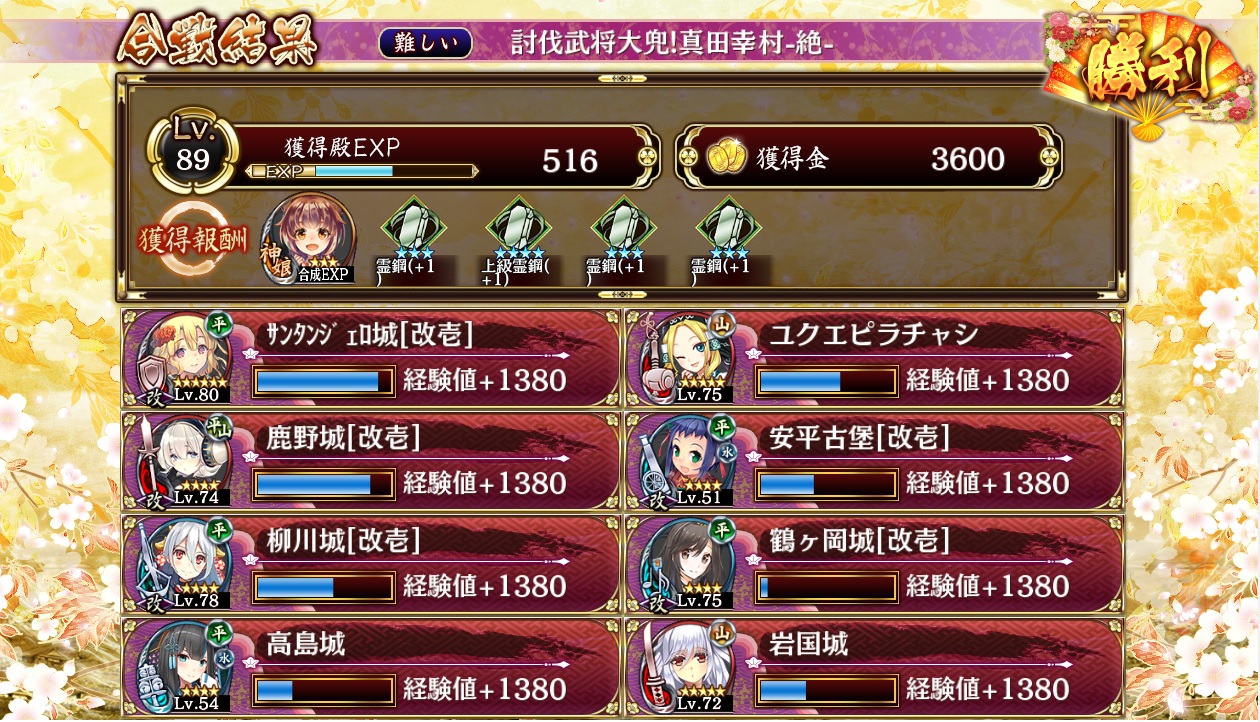 討伐武将大兜 真田幸村・絶 難しい 全蔵&大破無し+殿無傷でクリアー