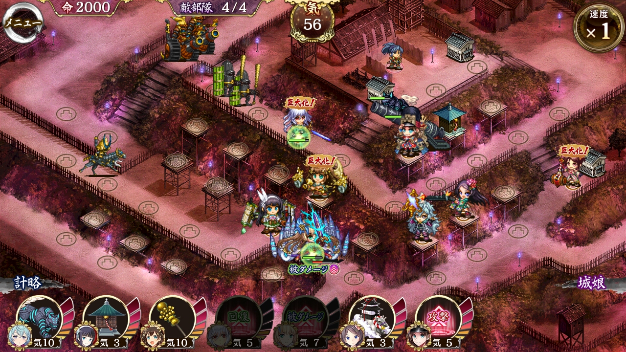 あえて言うなら敵がキャラより上を通る表示にならないかなと思う。無敵は鎖やノッブには強かったけど横綱はゆっくり来て半分隠れてからドスコイするからタイミングわからず何度か大破してしまい結局横綱だけは受けない位置へ避難させてしまった。ということでノッブも隠せるキャメ子の図