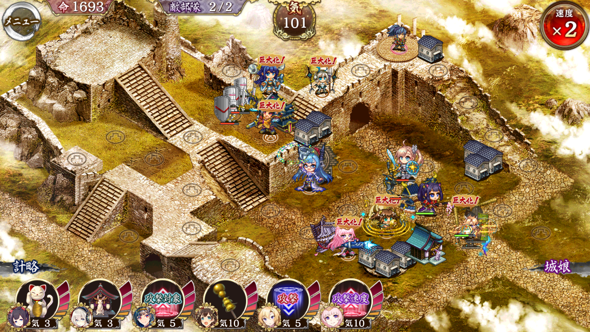 15に良城でそんなに巨大化しないでも戦えるかな。山科本願寺と大阪をとりあえず15に引っ掛けるくらいでウサギと盾は巨大化0。熊本、鉄砲が巨大化4してる。