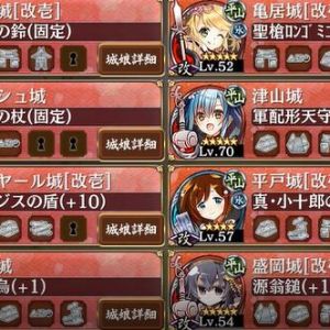 白河小峰改+彦根改+平蜘蛛+ファニ施設付きの常時計略貼り付けた金亀で…ダメ計無しでスピシュ四稜郭シュノンソー登場前に五稜郭なんとか倒せた…もっと早くに倒せたら良いんだけどね