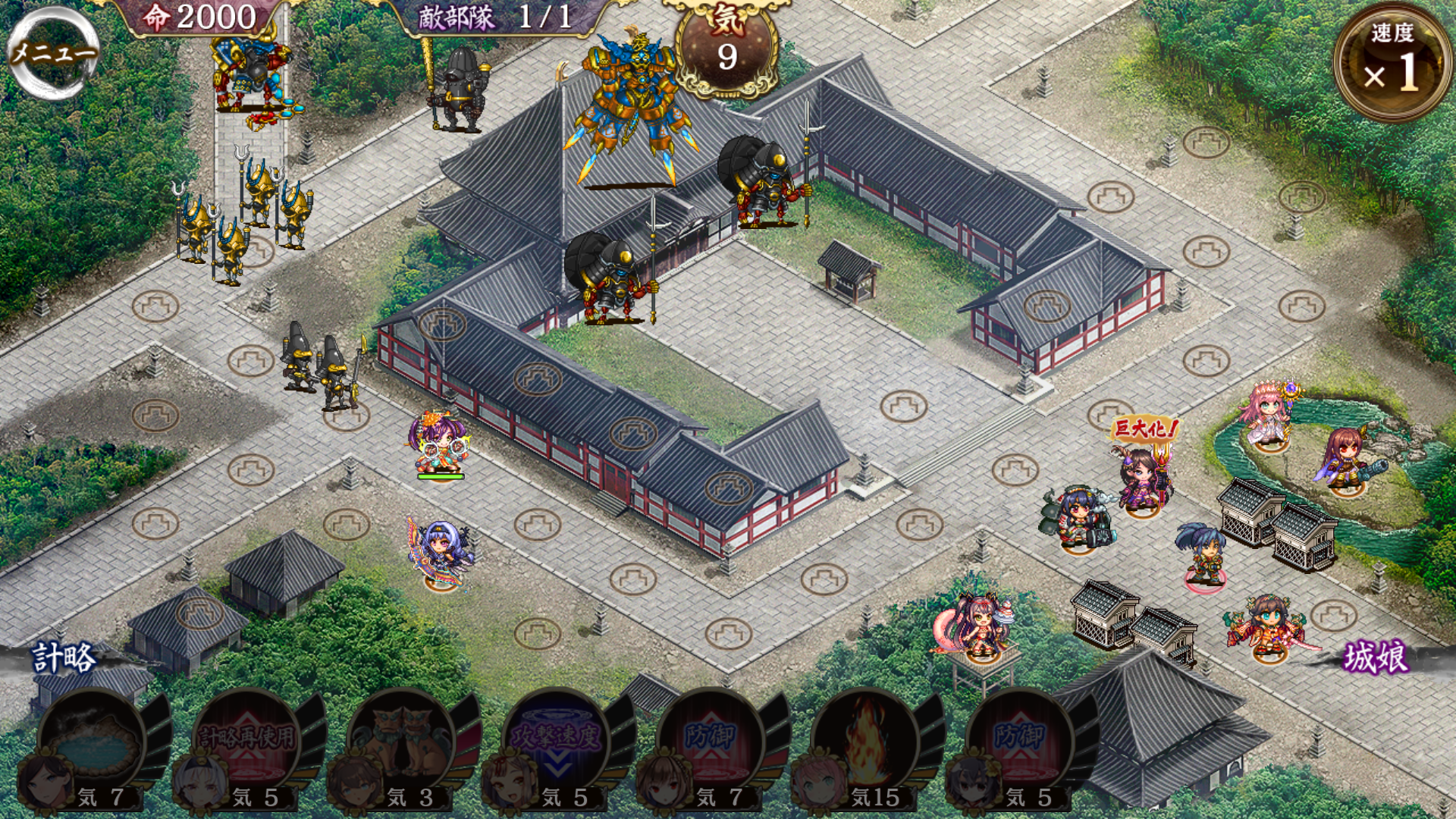 高岡で回転率を上げたプラハで焼く脳筋戦術で難全蔵、レベルは65~70前後。鞭は夏伏見の計略でスローになったところを長安がサンドバッグに。金の釘形は萩計略かけた盛岡で抱えて袋叩き。最後、兼続は夏伏見計略に盛岡と伊予松山の空蝉2回の遅延戦術の間にプラハで焼いて終わり。プラハはもちろん夏伏見がかなりの活躍だった