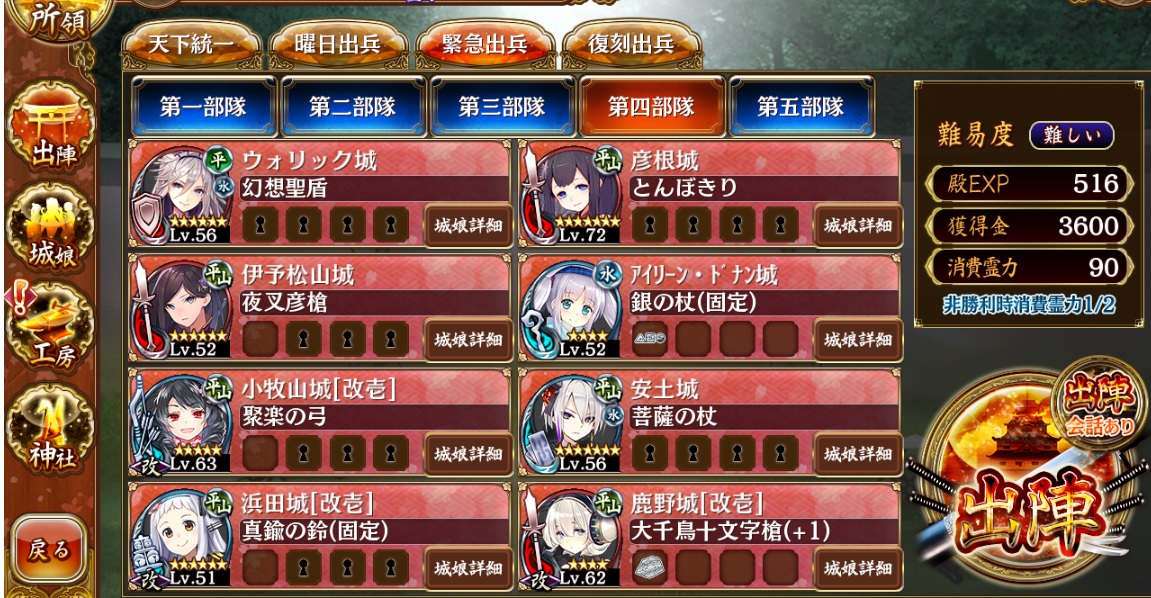 10浜田の最大化と、直江が通り過ぎたあとの25ドナン・18安土のタイミング、あとは12小牧山を最大化して14に浜田の龍で、直江を一周目で殺すという強い意思が鍵かな?最後に一気に遠距離を回収して26ウォリックを最大化しながら金のアレに耐えるっていうのがポイント