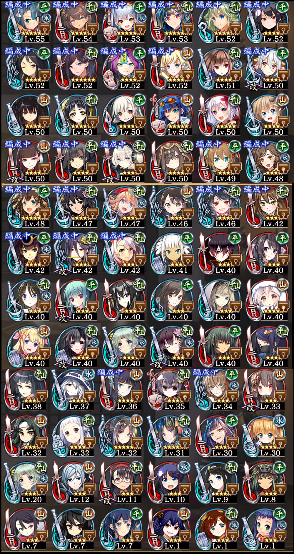 始めて2週間です。天下統一で行き詰まったので質問させて下さい。現在、「新たなる智〜常陸〜」まできたのですが、敵が強くギリギリ勝ててる状況です。なので育成をしようと思うのですが、私の手持ちの中でどの娘を育てたらいいか教えて頂けないでしょうか?旧作をやってたので引き継ぎキャラが何体かいて、ガチャは初回のみ引いてます。