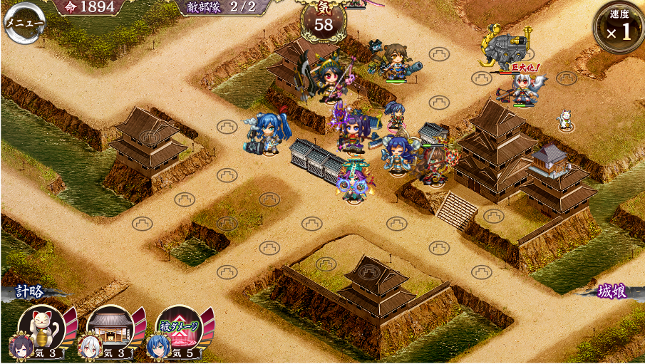 槌と拳の耐久をそれぞれ駿府の特技と山科で回復しつつ、耐久が減ったら回復兼ねて巨大化していく感じなので、山科の最大化の優先度は低めで桶。