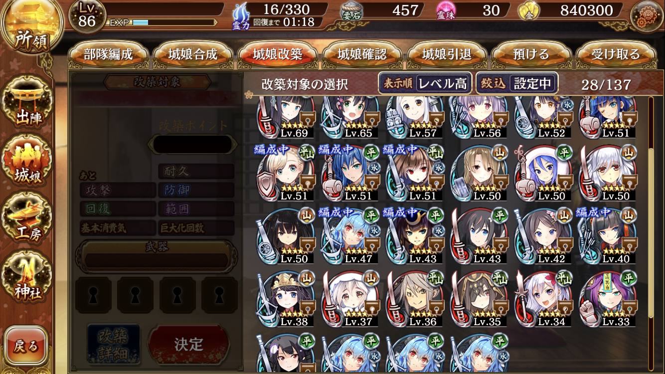 復刻イベ周回して、古河城がかなり手に入ったのですが、☆5キャラ改築するか、もうちょい粘って☆6の白河小峰城か高遠ネキを改築した方がいいのか迷ってます。4月から始めたアプリ殿なので☆5で改築出来たのはサンタと駿府くらいしかいません。☆5改築待機組はこんなにいるんですが誰優先に改築したら良いのでしょうか?教えてほしいです