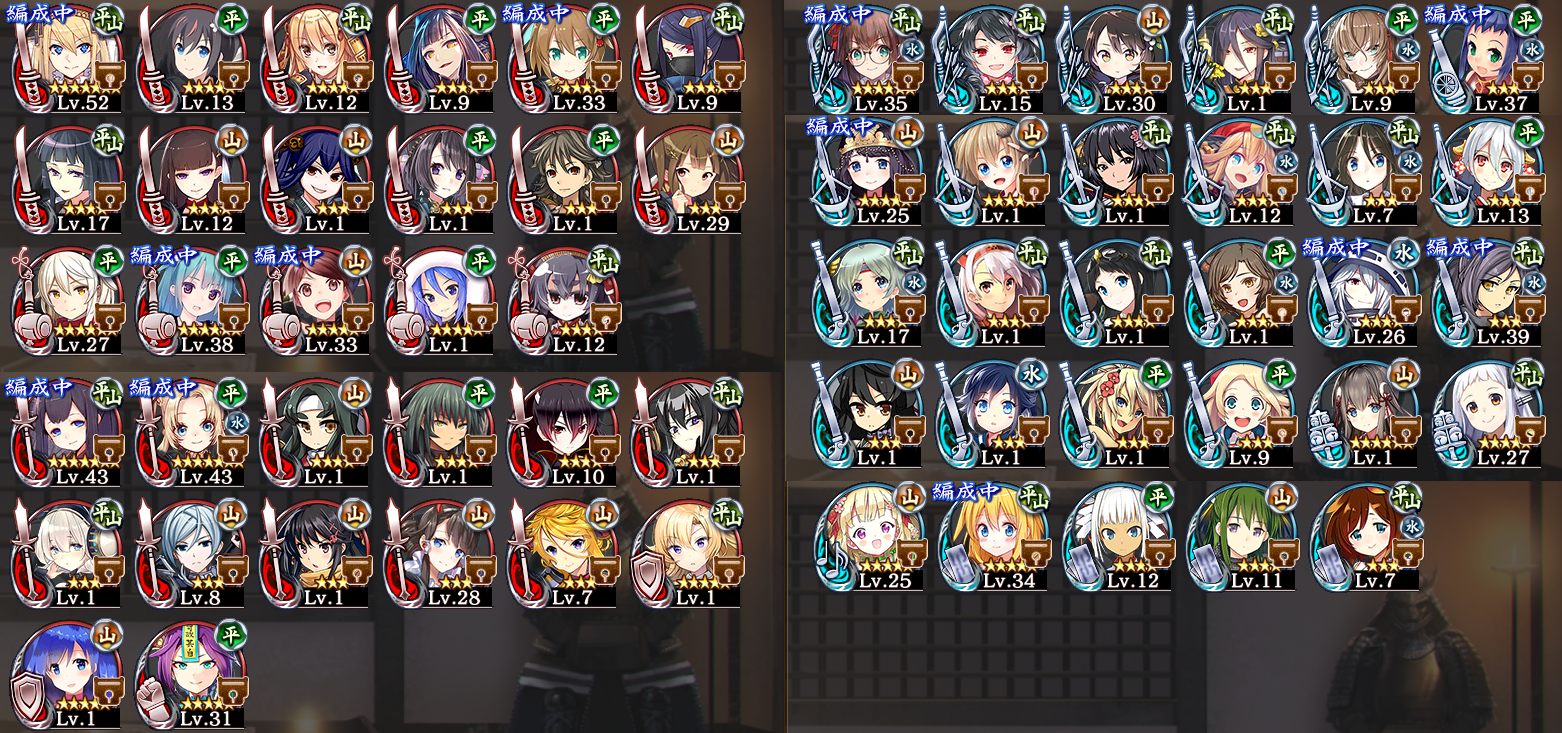 そろそろ一週間になるのですが、リセマラ数回で来てくれたウィンザー城の計略に頼りきりで突き進んできた影響か、大将やゾウ等が複数で出てくると一気に泥仕合になります。政宗には単騎で突破されてしまいました。手持ちを晒すので、育成指南やキャラの相性、今後ピックアップされたら狙い目の子などがいたら教えていただけないでしょうか?(☆2以下は限凸して保管庫にいます)