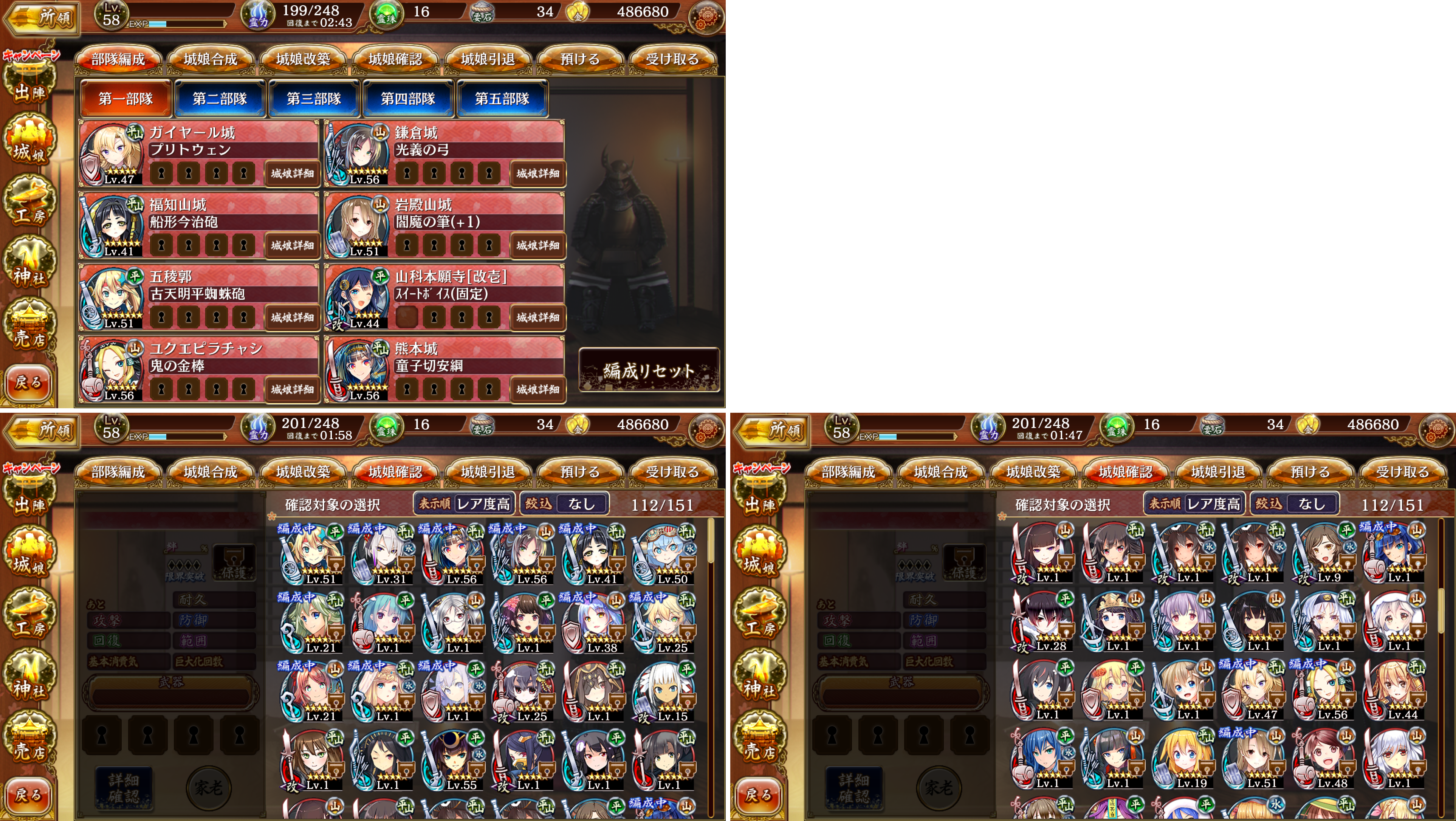 個人的にはピラチャシでも今は困ってないしフランケンや山中城もいるから名古屋城はまだいいかなぁと思い、主に大阪彦根で迷ってます