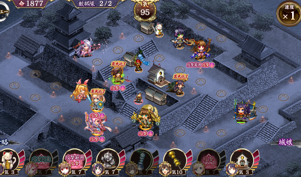 レア度に物言わせてるから参考になるかどうかはあれだけど、これで難戦功込みでクリア。聚楽第の位置がイカにタコられるからHP管理する必要あり。平山歌舞いなくて彦根臼杵使っても気の消費辛い