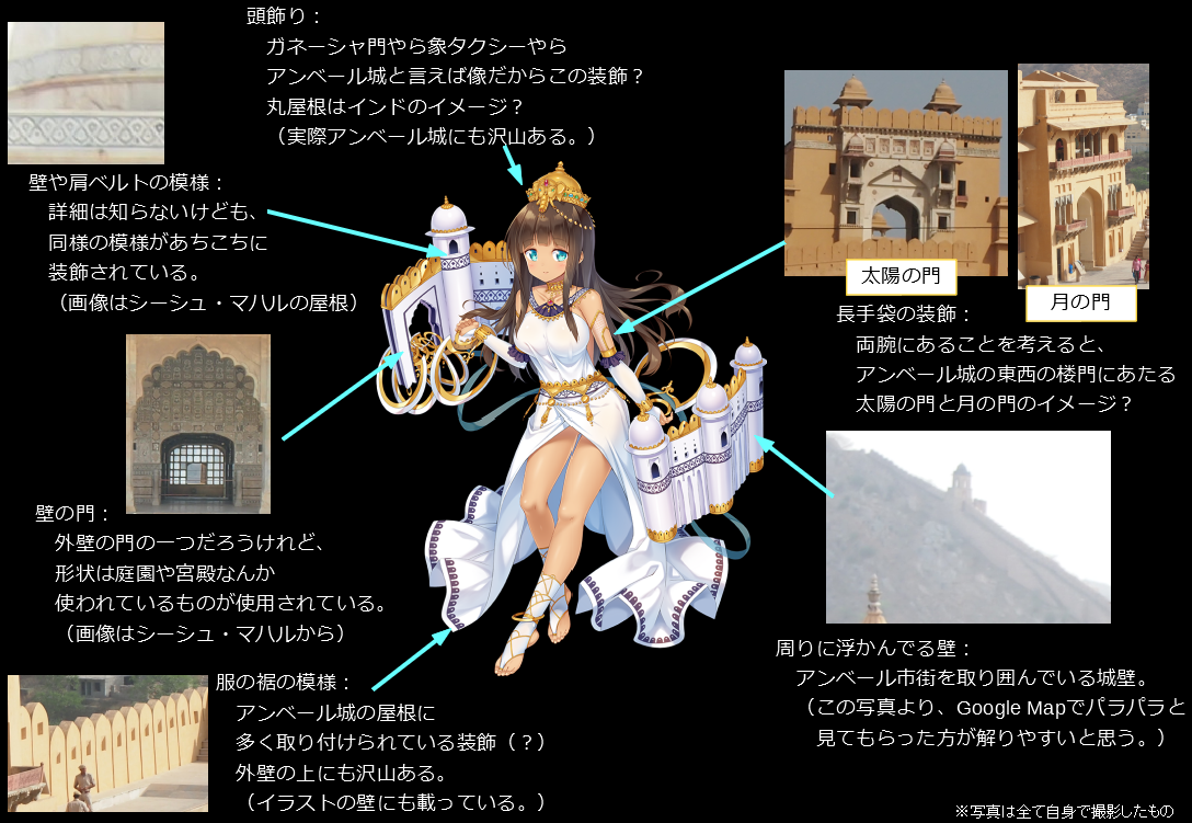 城娘デザインの元ネタとかこんな感じかな?まだ引けてないから本人がすでに言及済かもしれないけども… 彼女本体はアンベール城を示しているような気がした。