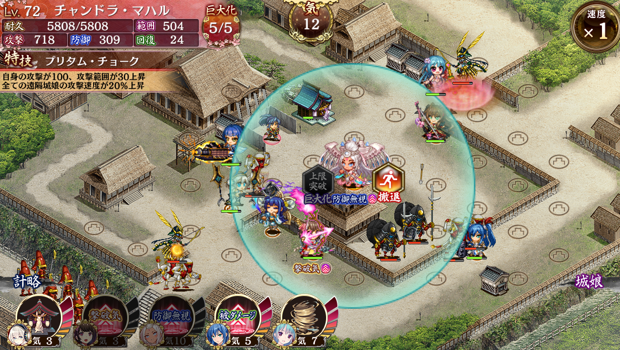 天下一46(平) チャンドラ・マハル(増築用施設なし) 四方戦輪(攻撃範囲+30) 山科本願寺(巨大化する度に範囲内の城娘の攻撃範囲が5上昇)