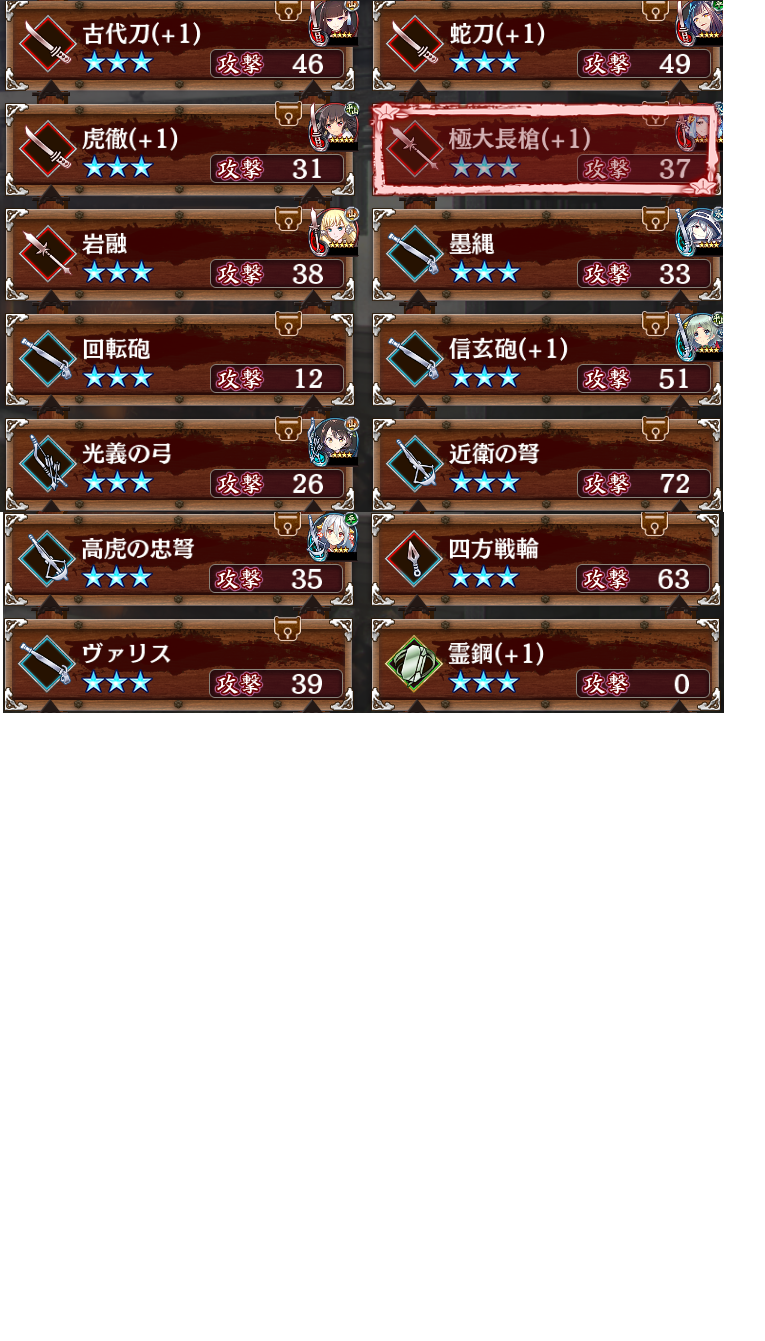 コマネ5は岡豊で間違いなさそうですね、動画確認してみて、法術連れ出して経験値入れておくことにしました。岡豊中央でも飛行相手に殿に届かれてるので防御無視で固めたほうがよさそうですね。杖での代用は鈍足も必要そうなので見送り……武器はほぼ星2なので星3だけ、星2以下に+3以上はありません。全体的な育成が足りなさそうなので、もう少し岩代は長い目で見ようと思います、ありがとうございます。七星は大阪彦根の2択になりそうですが、彦根城推しの方の理由について詳しくお願いしたいです。