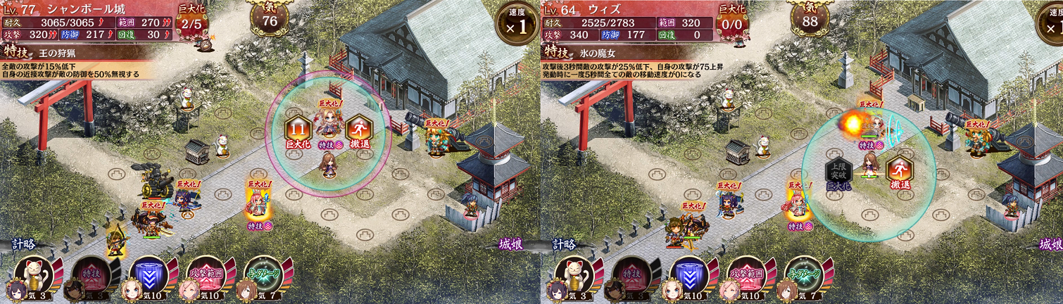 左がシャンボールのスペック、右が無傷からシャンボールに1回攻撃を受けたウィズのステータス。 枝主
