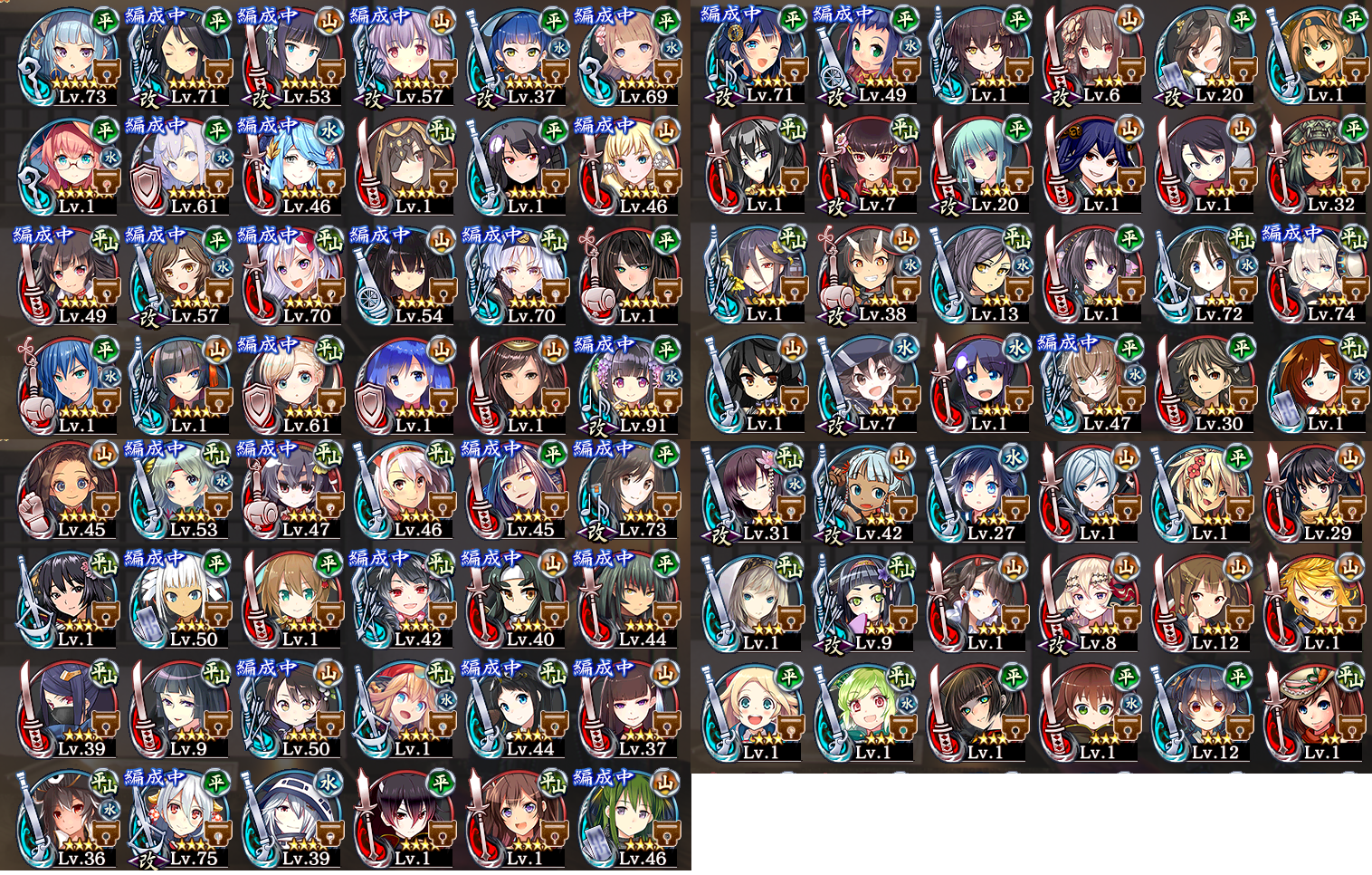 いっそ面子晒してみます。育ててる城娘が偏っていますが、これで後難と絶のお勧め編成教えてください…多分レベル足りてる面子が少ないので無理なら無理って言ってもらった方がいい気が…。