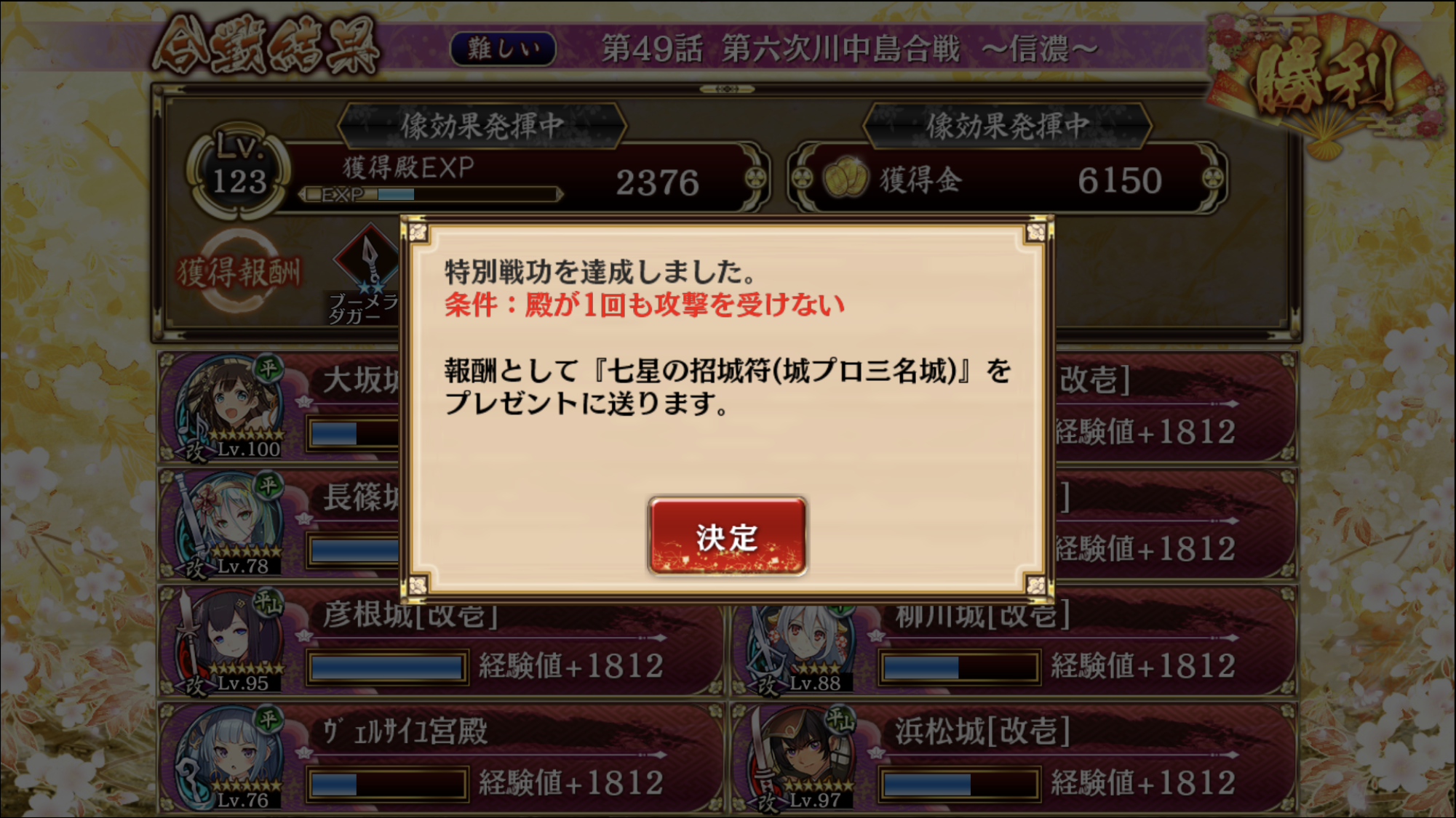 イケイケドンドンのゴリゴリオシオシで出来ました。浜松城、彦根城、ヴェルサイユ、大阪城、山科本願寺、長篠城、後は好みの遠距離×2で難クリア。幽霊と鉄砲隊置きまくりです。
