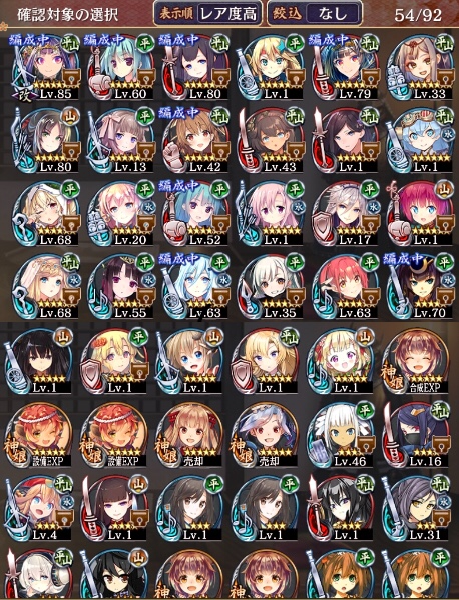 星七確定チケットをどの城娘と交換すれば良いか判断に困っている新米殿です。 レベルがそこそこ上げられている城娘でゴリ押し気味に戦ってしまっているなあとも感じるのですが、先輩殿の助言を頂きたく存じます…! 手持ちはこのような感じです。