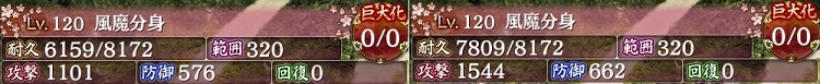 左が彦根、正月大坂(範囲外)、安平の特技発動状態、右がそれに+して正月大坂の計略(1.5倍)ウィンザーまで加えると完全にオーバーキルだなぁ…
