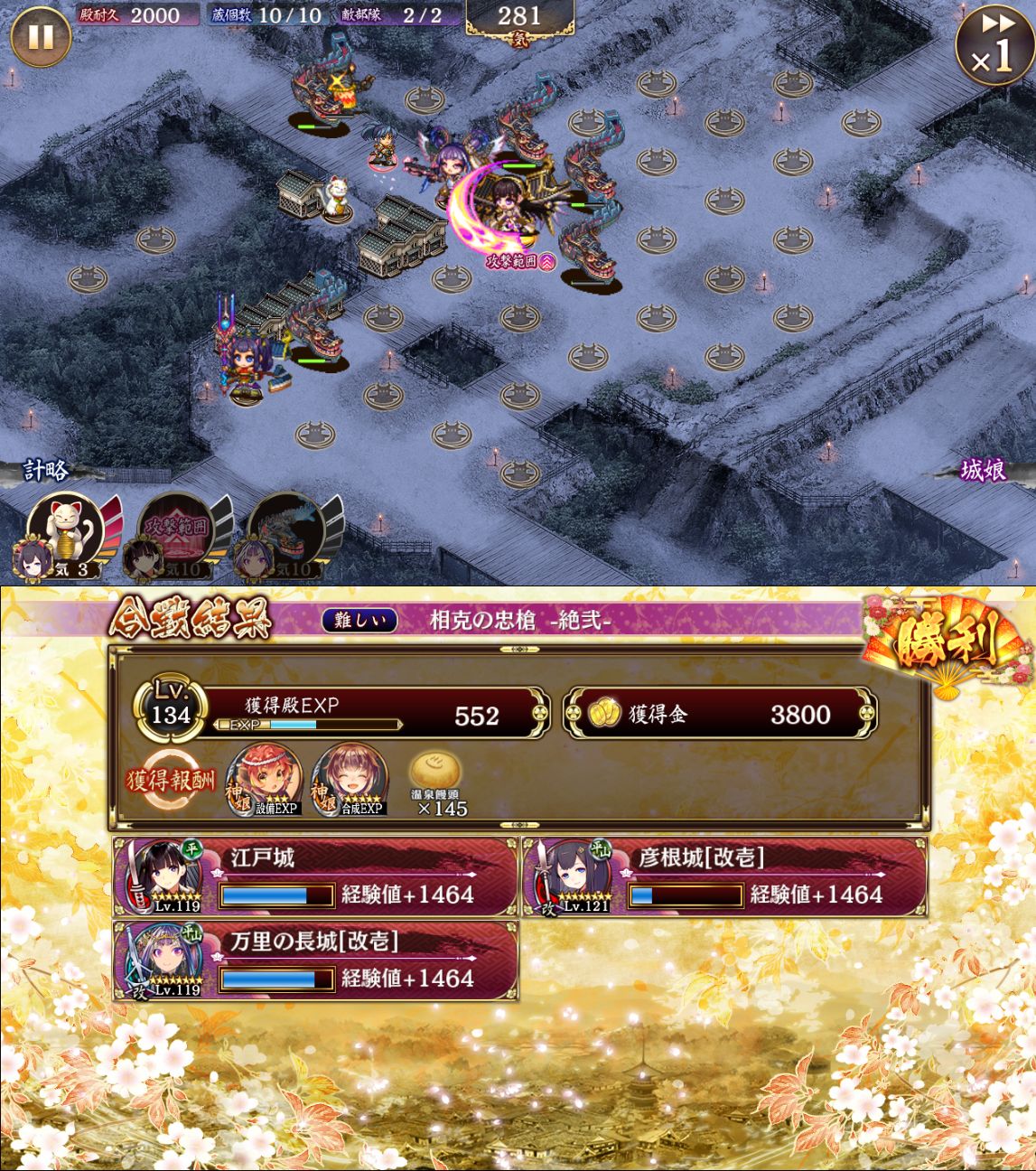 江戸・彦根・万里のみ 相克の忠槍/絶弐難(蔵無傷)配置と勝利画面