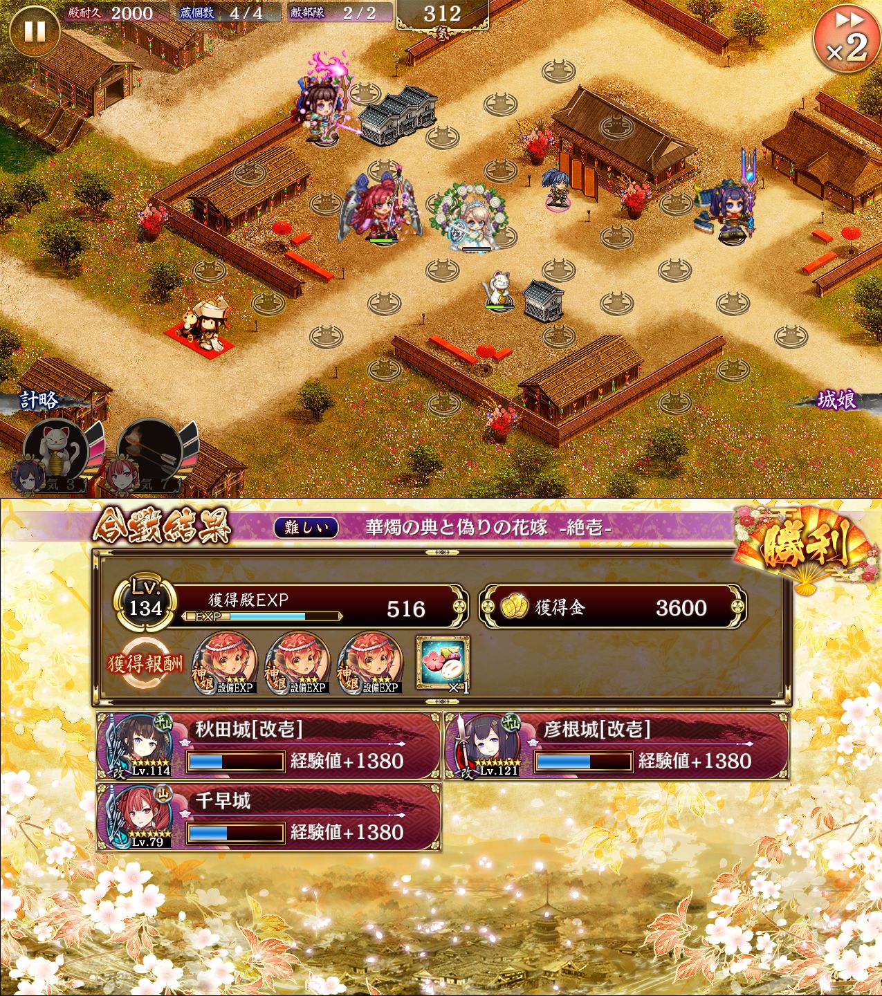 彦根・千早・秋田のみ 華燭の典と偽りの花嫁/絶壱 配置と勝利画面