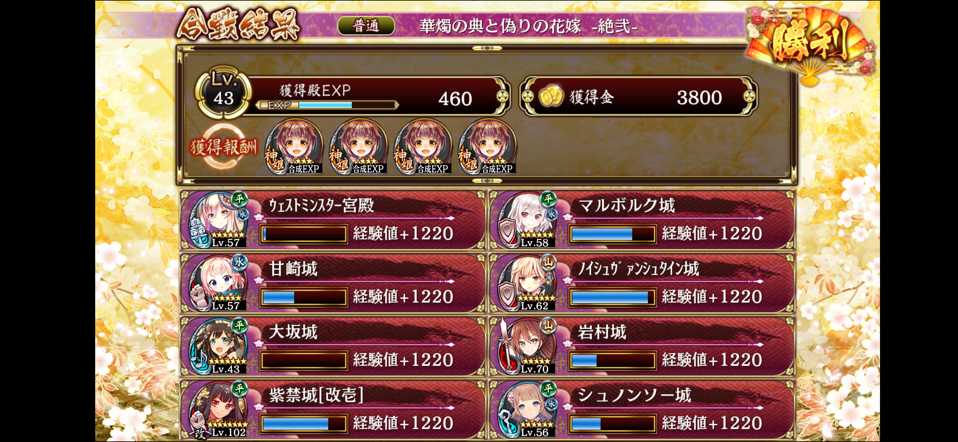何度もやり直しさせられたけど近接重視だね。弓とか大砲は意味なかった。ただ、23の杖がすげぇいい仕事する。30に鈴置いて、右から殿に向かう敵を削って置いて、杖で対処する感じ。殿の両隣は剣とか槍だと死ぬから盾で殿を挟んで杖に対処してもらった。右は槍と拳と鈴、左はロンドンと大阪と杖と紫禁城改壱。漏らしても盾が止めてくれるからその隙に杖が倒してくれる 。開幕はひたすらロンドンを最大化まで上げて、ロンドン計略。序盤の敵は全部ロンドンに任せて、23シュノンソー、18大阪、15紫禁城改壱、27ノイシュバンシュタイン、31マルボルク、30ウェストミンスター、29甘崎、25岩村、19黄龍、常時ロンドンにロンドン計略、26、22に大阪計略、21にシュノンソー計略、あとは岩村やノイシュバンシュタイン、甘崎の計略を使ってたら勝てた。初勝利で戦功も両方とれた