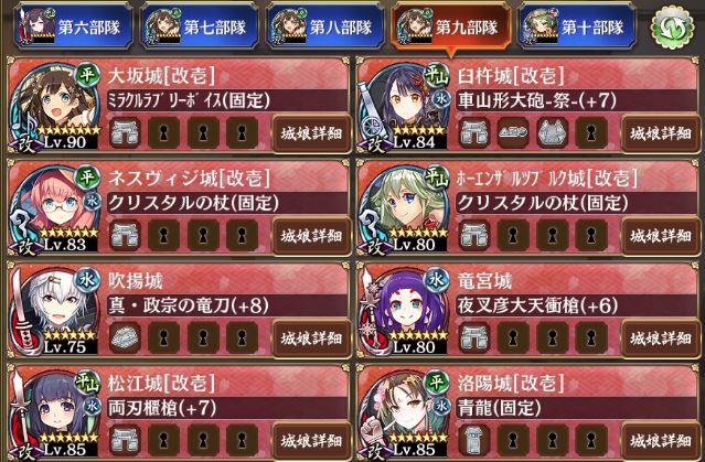 動画を参考にしてようやく戦功1、2クリアできた...モンサンいない辛さよ。配置は23臼杵、19吹揚、24ホーエン、21大阪、22竜宮、25松江。2W目の象が通り過ぎたら14ネスヴィジ。3Wで臼杵を13に再配置。5Wでネスヴィジを27に再配置。高虎君がいいところまで来たらネスヴィジとホーエンの特技発動してなんとかギリギリ...
