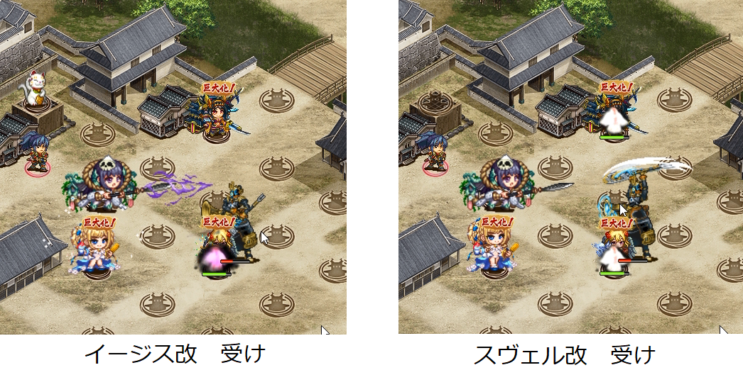 イージス改の攻撃範囲ダウン。硝煙:結の片倉でこのくらいの差。実質「盾で抱えること」が条件なので限定的ではあるものの、使い方次第やね。