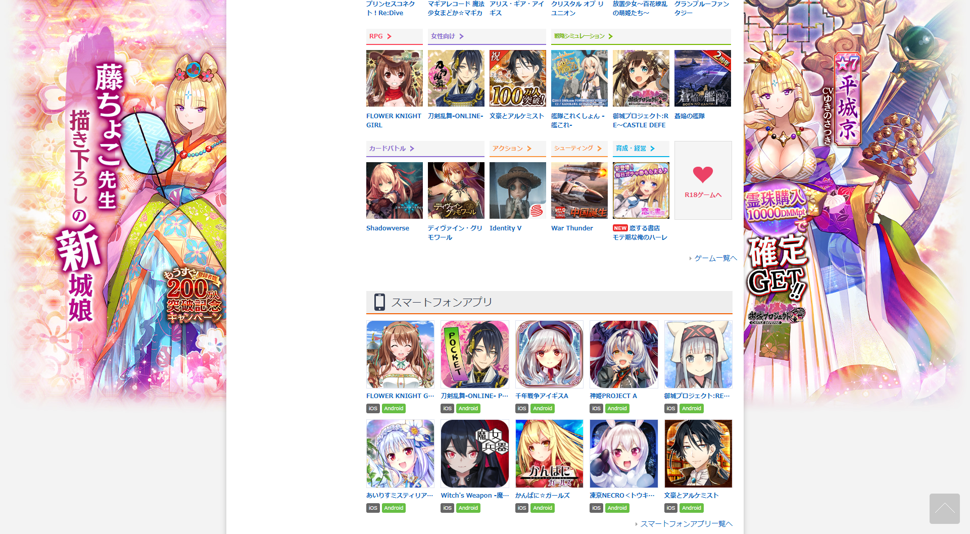 イラストレーター藤ちょこ 平城京(DMMトップページのスクショです)