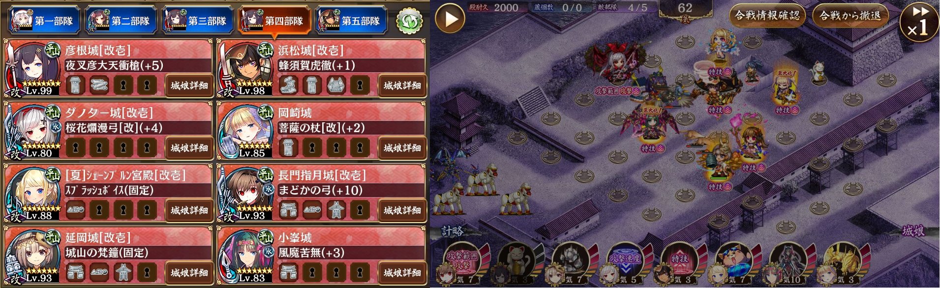 夏シェーンと小峯城で氏郷を封殺できるという書き込みを元に、指月伏見も弘前も無いなりに組んでみたが5Wで処理が追いつかない...組み方が間違ってるのか力不足なのか