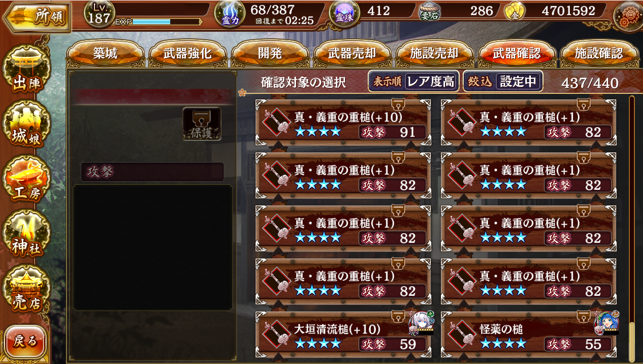 特霊鋼集めつつ、一部隊分の佐竹槌無事収集完了。島津槌とどっち持たすかな。