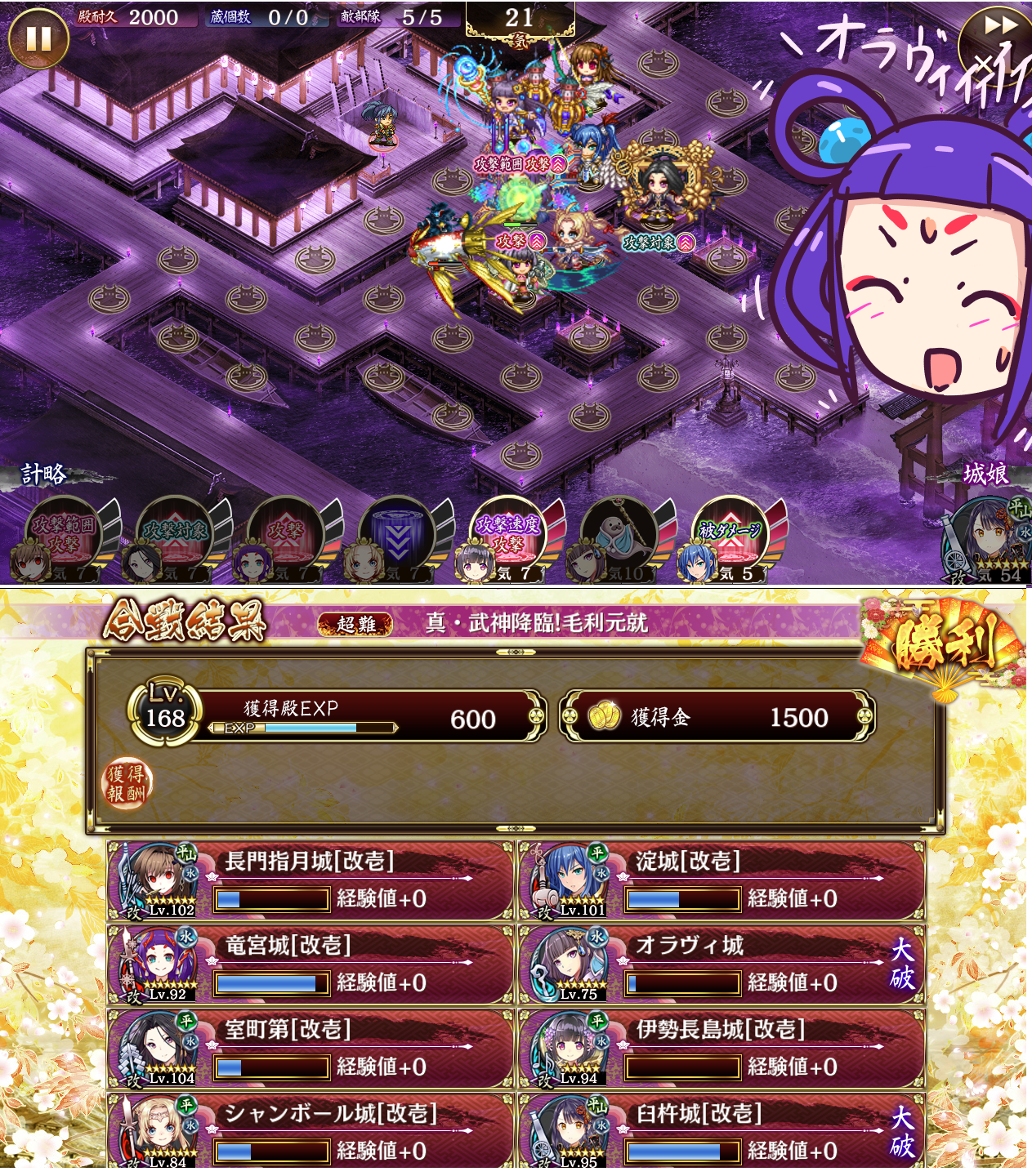 吹揚を臼杵城に変えても気はある程度稼げます。臼杵の重さと、ノビシャドの置き場がまず問題。特技発動した吹揚が強いというのも有りますね。
